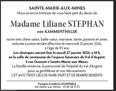 Décédée à Sainte-Marie-aux-Mines (68160, France) le mercredi 21 janvier 2026 à l'âge de 93 ans