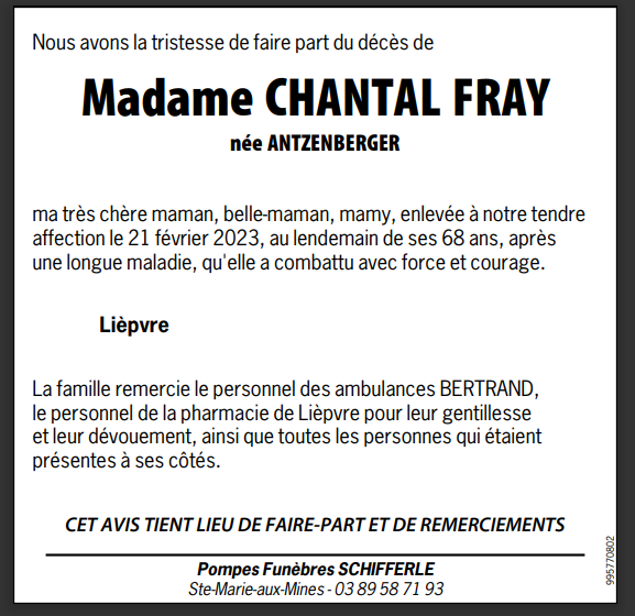 Veuve de Monsieur DANIEL FRAY
