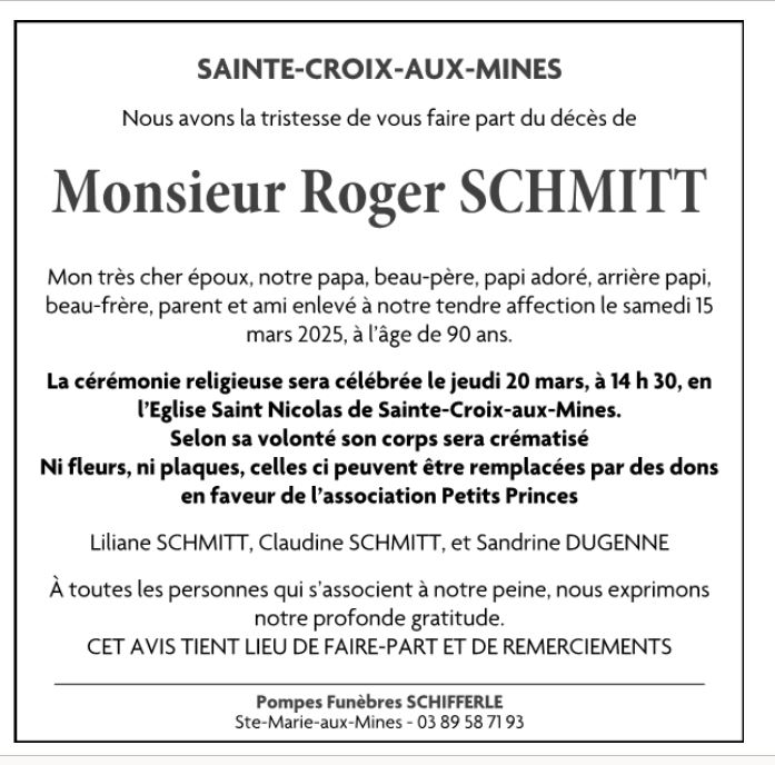 Décédé à Selestat (67600, France) le samedi 15 mars 2025 à l'âge de 90 ans