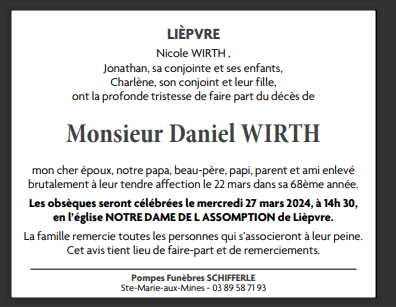 Epoux de Madame NICOLE WIRTH née VILLEMIN